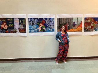 بشعرها الأحمر المنسدل تحت أشعة الشمس المنعكسة من شباك غرفتها الواسع، روت خياط لرصيف22، كيف فتح لها الفن باباً سرّياً للسعادة بالرغم من قسوة المحيط: "لقد منحني هذا الفن القوة للمشاركة في الثورة السورية ضد قمع السلطة وأصبح ملاذي وسندي لأستمر في الحياة حين خرجتُ من دمشق".