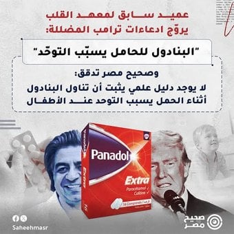 منصة صحيح مصر، أوضحت أنّ الادعاء مضلل. فبحسب مراجعات وكالة الأدوية الأوروبية، منظمة الصحة العالمية، ووكالة تنظيم الأدوية في بريطانيا، "لا يوجد دليل علمي يثبت أنّ الباراسيتامول ("بانادول" اسم تجاري له)، في أثناء الحمل يسبب التوحّد". على العكس، يوصي الأطباء باستخدامه لعلاج الألم والحمى باعتباره الخيار الأكثر أماناً للحوامل.