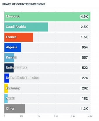 أظهرت التحليلات أنّ النسبة الكبرى من هذه المنشورات جاءت من المغرب، وبرغم أنّ الأحداث وقعت فيه إلا أنّ نسبة المنشورات المنشورة من المغرب بلغت فقط نحو 38% من إجمالي المنشورات، وحلّت السعودية في المرتبة الثانية بنسبة 19.2% من المنشورات، ثم فرنسا ثالثةً بنسبة 12.8% من المنشورات، فالجزائر بنسبة 7.5% من المنشورات.