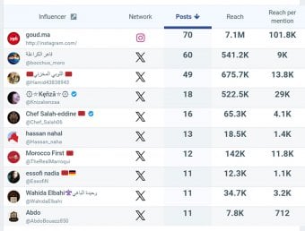 جاء في صدارة القائمة حساب "goud.ma" على إنستغرام، إذ نشر 70 منشوراً تضمّن أحد الوسوم التي ركّز عليها البحث. ويُعدّ الحساب تابعاً لجريدة "گوديريش" الإلكترونية، التي قدّمت تغطيةً متنوعةً للاحتجاجات في المغرب.