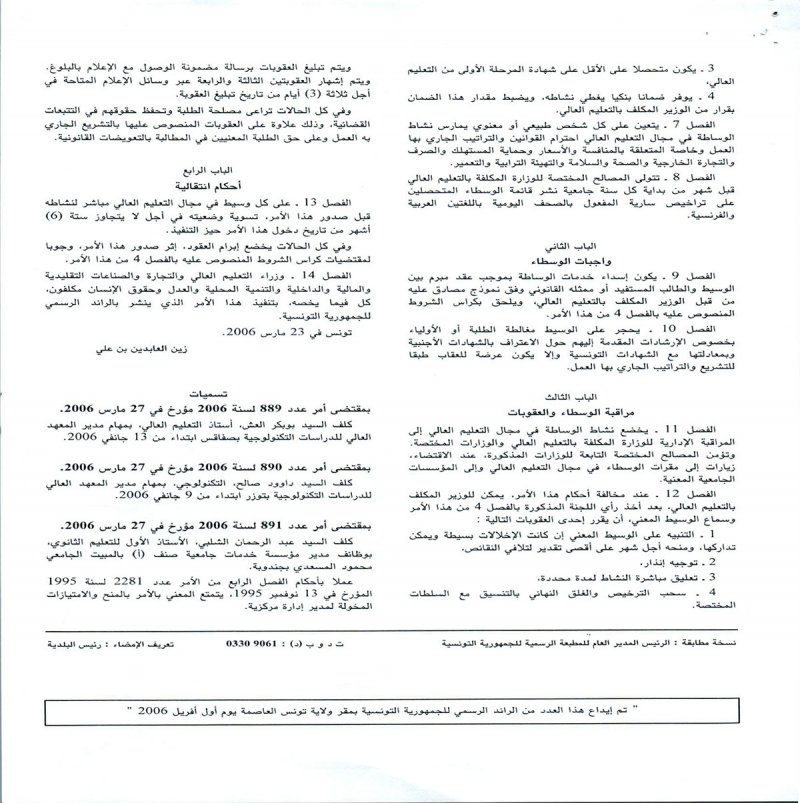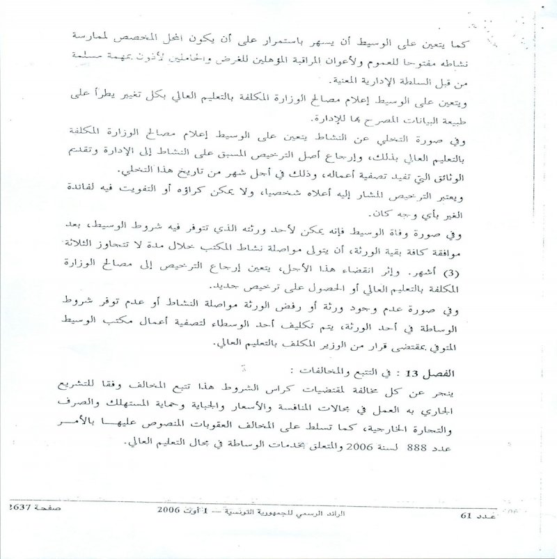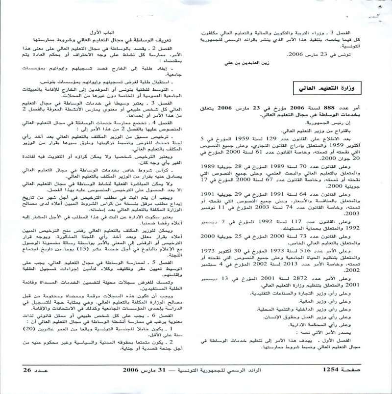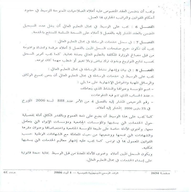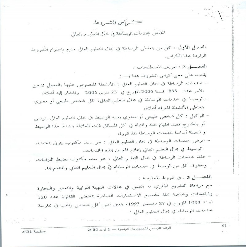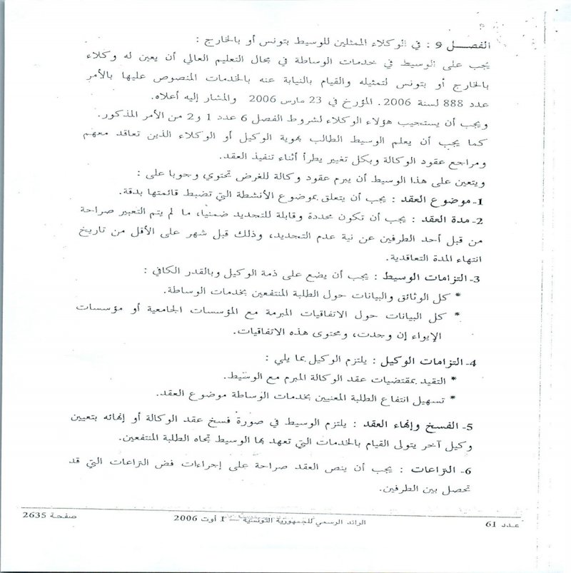 في أحد مكاتب المحكمة الابتدائية في نابل، جلسنا مع المحامية انتظار السنوسي، وأطلعناها على نسخة من العقد الذي أمضته الطالبة رقية مع أحد مكاتب الوساطة بجانب كرّاس الشروط المنظم لخدمات الوساطة التعليمية (الأمر عدد 888 لسنة 2006)، والذي تلقينا نسخةً منه من الوزارة عن طريق مطلب النفاذ إلى المعلومة.