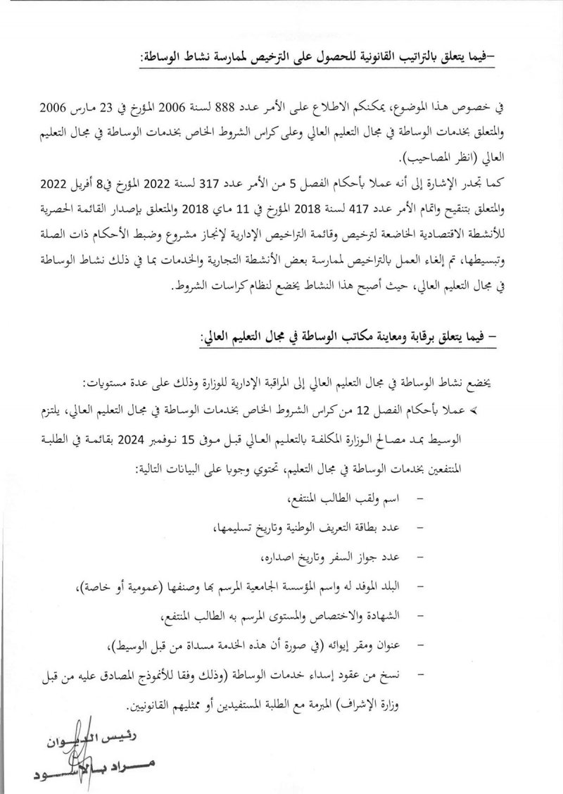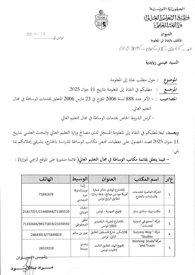 كل هذه الوقائع تكشف أن المسألة لم تعد مرتبطةً بكم تجني هذه المكاتب فقط، بل بالمنظومة التي تسمح لها بالازدهار. وزارة التعليم العالي اكتفت بمشاركتنا كرّاس الشروط، ولم تردّ على طلبنا مقابلةً رسميةً. مطلب النفاذ إلى المعلومة الذي قدمناه لم يزد سوى نسخة من القانون، بلا أي إشارة إلى نتائج المراقبة أو آليات المحاسبة على المخالفات.