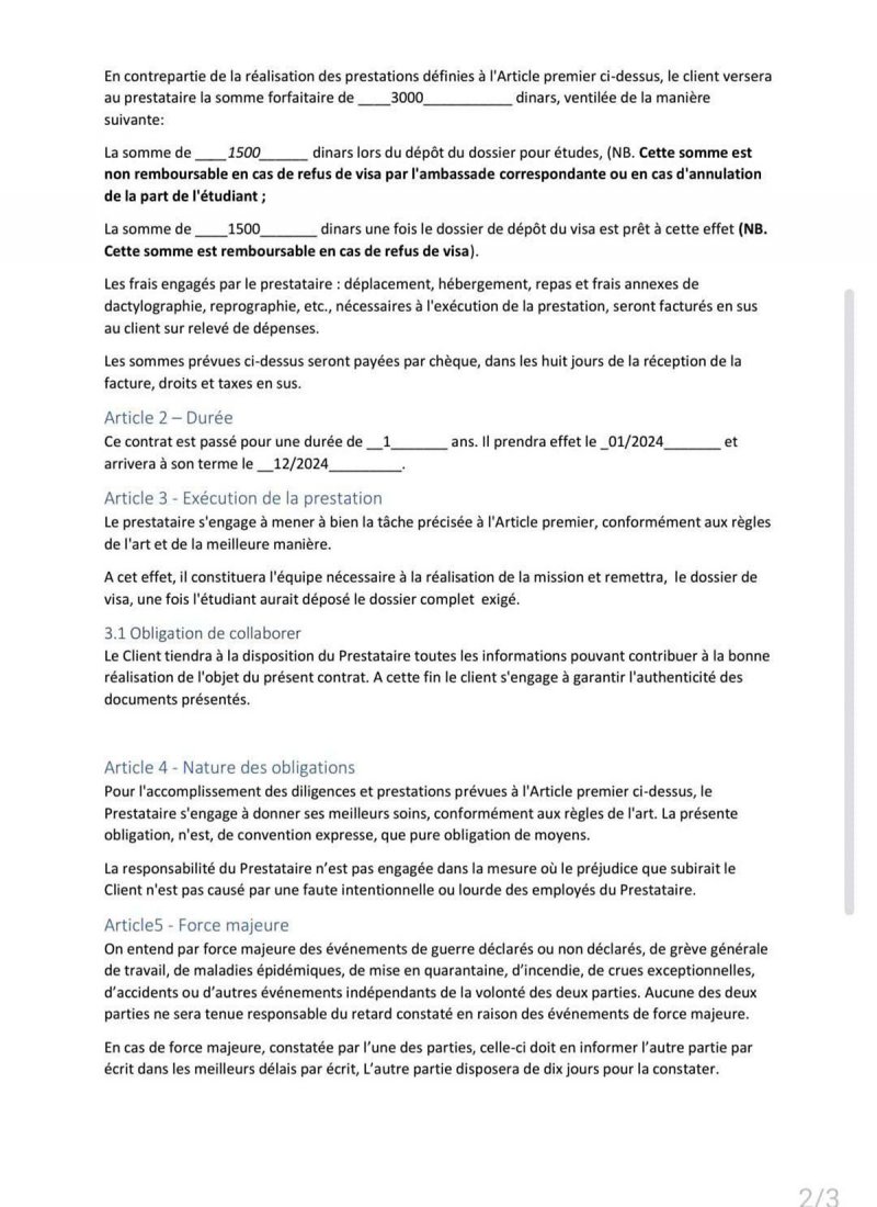 كما يوضح مهدي أنّ المبلغ الذي كان هذا المكتب يطلبه عادةً كان 1،550 ديناراً تونسياً (أكثر من 500 دولار)، ثم خُفّض إلى 1،250 (نحو 400 دولار)، وعندما علمت الموظفة أنه يفكر في وكالة أخرى، خفّضت السعر مجدداً إلى 950، مشدّداً على أن هذا المكتب كان "في منتهى الحرفية" وساعده إلى النهاية. كما يلفت إلى أن ما يُسمّى "قبولاً جامعياً" ليس بالضرورة التزاماً بالدراسة في الجامعة نفسها، بل غالباً يُستعمل فقط لتسهيل الحصول على تأشيرة تعليمية، فيما يكون الطالب بعد السفر حرّاً في اختيار أي جامعة أو تخصّص دراسي يناسبه.