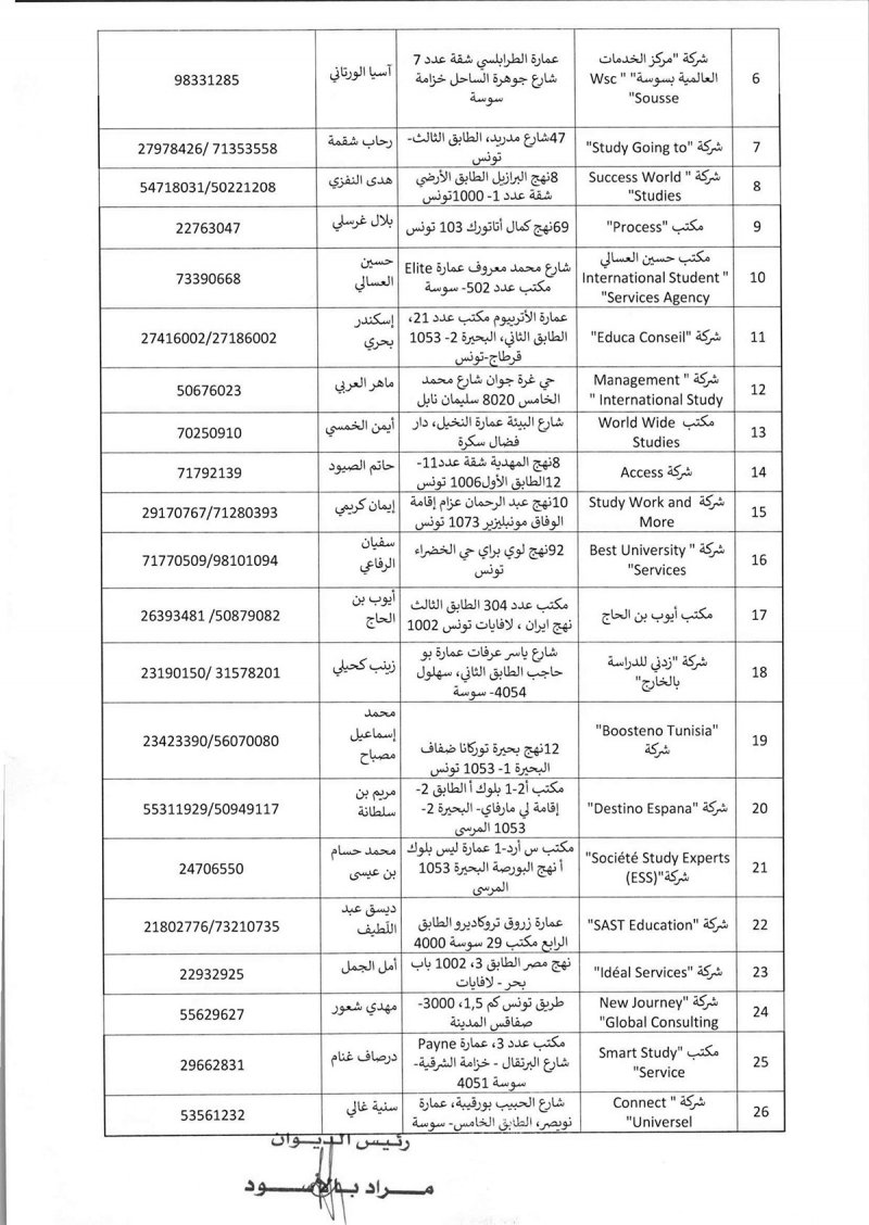 برغم أن المكتب ينشط وينشر بانتظام على السوشال ميديا، ويقع مقره في الشارع الأشهر في تونس العاصمة، إلا أنه ليس معتمداً وفق قائمة المكاتب المعتمدة من قبل وزارة التعليم العالي والتي شاركتها الوزارة مع رصيف22.