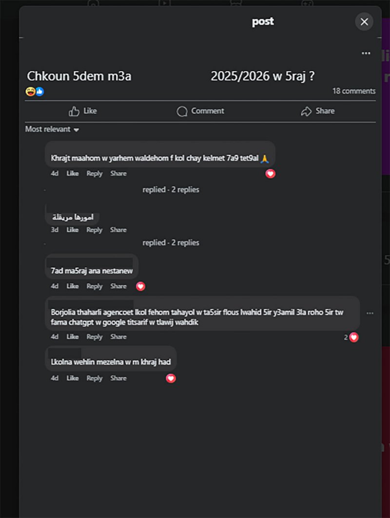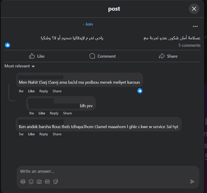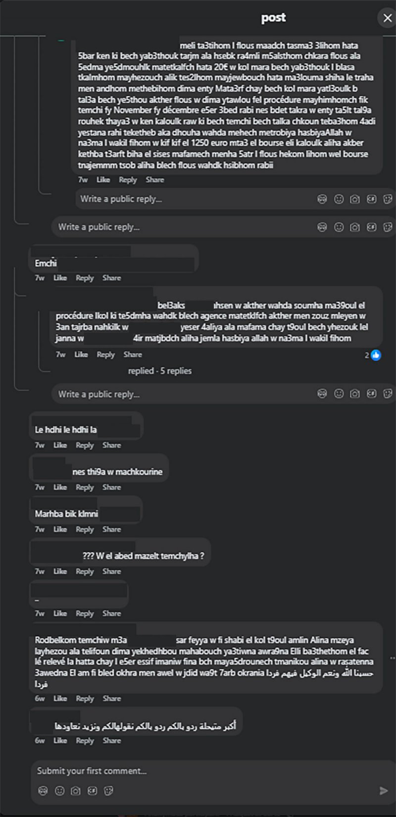 ما رصدناه عبر فيسبوك يؤكد ذلك. منشورات مثل هذه المكاتب مليئة بصور طلبة مبتسمين أمام جوازات سفر مختومة، لكن في التعليقات في إحدى المجموعات تنتشر تعليقات "مجهولة الهوية" تُظهِر الوجه الآخر، على غرار: