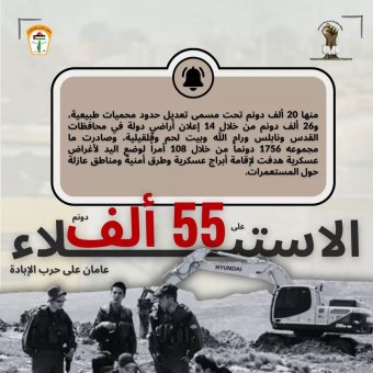 اعتمدت سلطات الاحتلال خلال العامين الأخيرين سياسةً مكثفةً لمصادرة الأراضي باعتبارها الركيزة الأساسية لإعادة تشكيل الجغرافيا في الضفة الغربية. فمنذ تشرين الأول/ أكتوبر 2023، صادرت نحو 55 ألف دونم عبر تصنيفات جديدة لأراضي الدولة والمحميات الطبيعية والأغراض الأمنية، وفي السياق نفسه، كشف تقرير الهيئة لشهر تشرين الأول/ أكتوبر 2025، أنّ سلطات الاحتلال استولت خلال ذلك الشهر وحده على ما يزيد عن 244 دونماً عبر ثلاثة عشر أمراً عسكرياً، استُخدمت لإنشاء مناطق عازلة حول المستوطنات وشق طرق جديدة وتعديل أوامر صادرة في عامي 2005 و2006، في محاولة لإحكام السيطرة على محيط التجمعات الاستيطانية، وهكذا تتكامل المصادرات الواسعة مع المصادرات الشهرية المتواصلة لتحويل القرى الفلسطينية إلى جيوب محاصرة تفقد تواصلها الجغرافي الطبيعي.