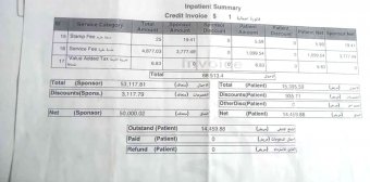 فاتورة صادرة عن المستشفى للعامل أحمد طارق