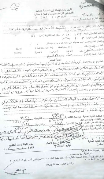 تقرير بشأن الإحالة إلى المحكمة العمالية للفصل في النزاعات القضائية