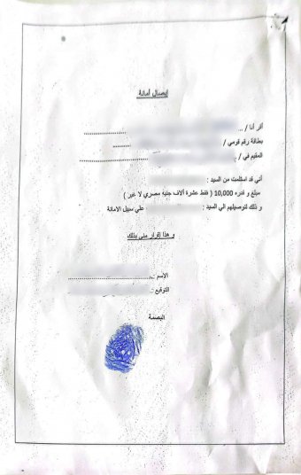 وعندما اشتكى للإدارة، اضطر إلى تقديم استقالته خشية استخدام إيصال الأمانة ضده، الذي قد وقعه عند استلام العمل بقيمة 200 ألف جنيه. ووفقاً للاستبيان، فإن 48% من العمال أجبروا على توقيع إيصال أمانة أو كمبيالة، وتعرّض 18% منهم للابتزاز المباشر، فيما أفاد 27% بأن هذه التهديدات دفعتهم للتنازل عن حقوقهم.