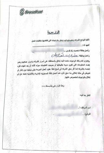 وأشار إلى أن إقرار السرية الذي تفرضه "بريد فاست" على عمالها يتضمن نصوصاً مخالفة للقانون؛ إذ إن فسخ العقد اختصاص يملكه القضاء وحده، وفقاً للمادة 148 من القانون رقم 14 لسنة 2025. كما أكد أن إجبار العمال على توقيع إيصالات أمانة يمثل وسيلة ابتزاز شائعة، لا يحكمها أي إطار قانوني واضح، داعياً إلى تدخل تشريعي مباشر يجرّم هذه الممارسات، وإصلاحات عاجلة تضمن حقوق عمال التوصيل الرقمي، مع فرض رقابة فعلية على الشركات.
