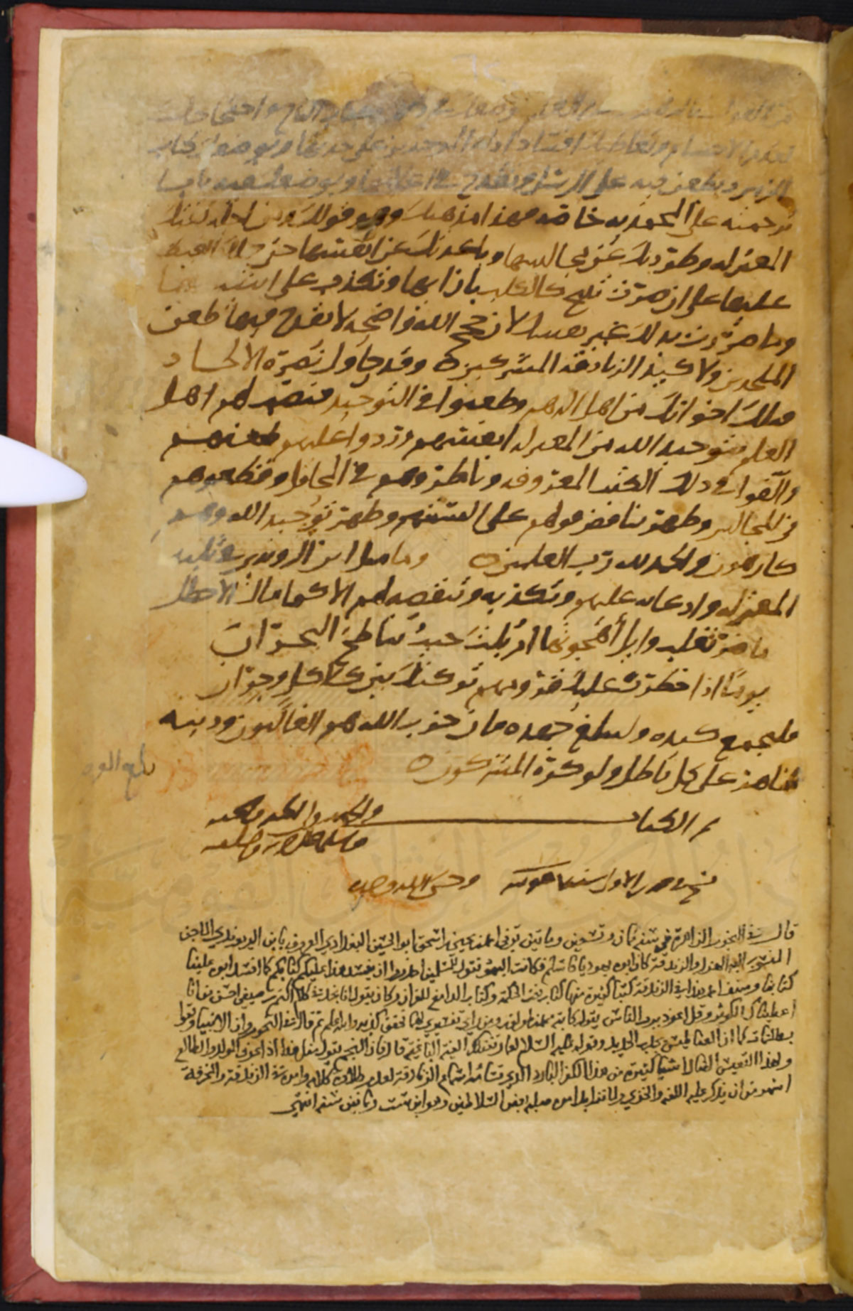 ينتهي هذا المخطوط بقيد فراغ موجز يقول فيه الناسخ: "تم الكتاب والحمد لله وليّ الحمد… / نُسخ في جمادى الأولى سنة 347 هـ/ وحسبي الله وحده". وهنا استخدام فعل "نُسخ" يشير، على الأرجح، إلى أن الكتاب نُسخ من نسخة أخرى. أما لو كان الكتاب مكتوباً بخط يد مؤلفه مباشرةً، لكان الفعل الأنسب هو "كُتب". وإذا كان النص قد ورد بالتلقي (الإملاء)، لكان من المناسب استعمال فعل مثل "أُملي".