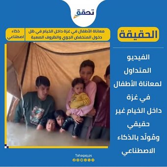 وعلى الرغم من قسوة المشاهد الحقيقية لغرق الخيام في غزّة، وجدت منصتا "تحقّق" و"تيقن" أن هذا المقطع بالتحديد مُولَّد بالذكاء الاصطناعي. ويتسبب تداول مثل هذا النوع من المقاطع غير الحقيقية دون تحقّق مهني في تشويه الواقع وخلط الحقائق، كما يُضعف الجهود الحقوقية والإنسانية التي تعتمد على التوثيق الدقيق لمعاناة المدنيين الفلسطينيين في غزة.