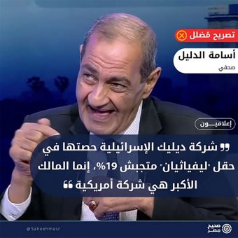 علّق الكاتب الصحافي المصري أسامة الدليل، في لقاء تلفزيوني، على توقيع مصر اتفاقاً جديداً لتوسيع صادرات الغاز الطبيعي، مدعياً أن إسرائيل لا تملك حقل ليفياثيان، أحد أكبر حقول الغاز الطبيعي المكتشفة في البحر الأبيض المتوسط، والذي يقع قبالة السواحل الإسرائيلية، وأن حصّة شركة NewMed Energy الإسرائيلية (ديليك سابقاً) في الحقل لا تتجاوز 19%، وأن مالكة الحقل هي شركة أمريكية.