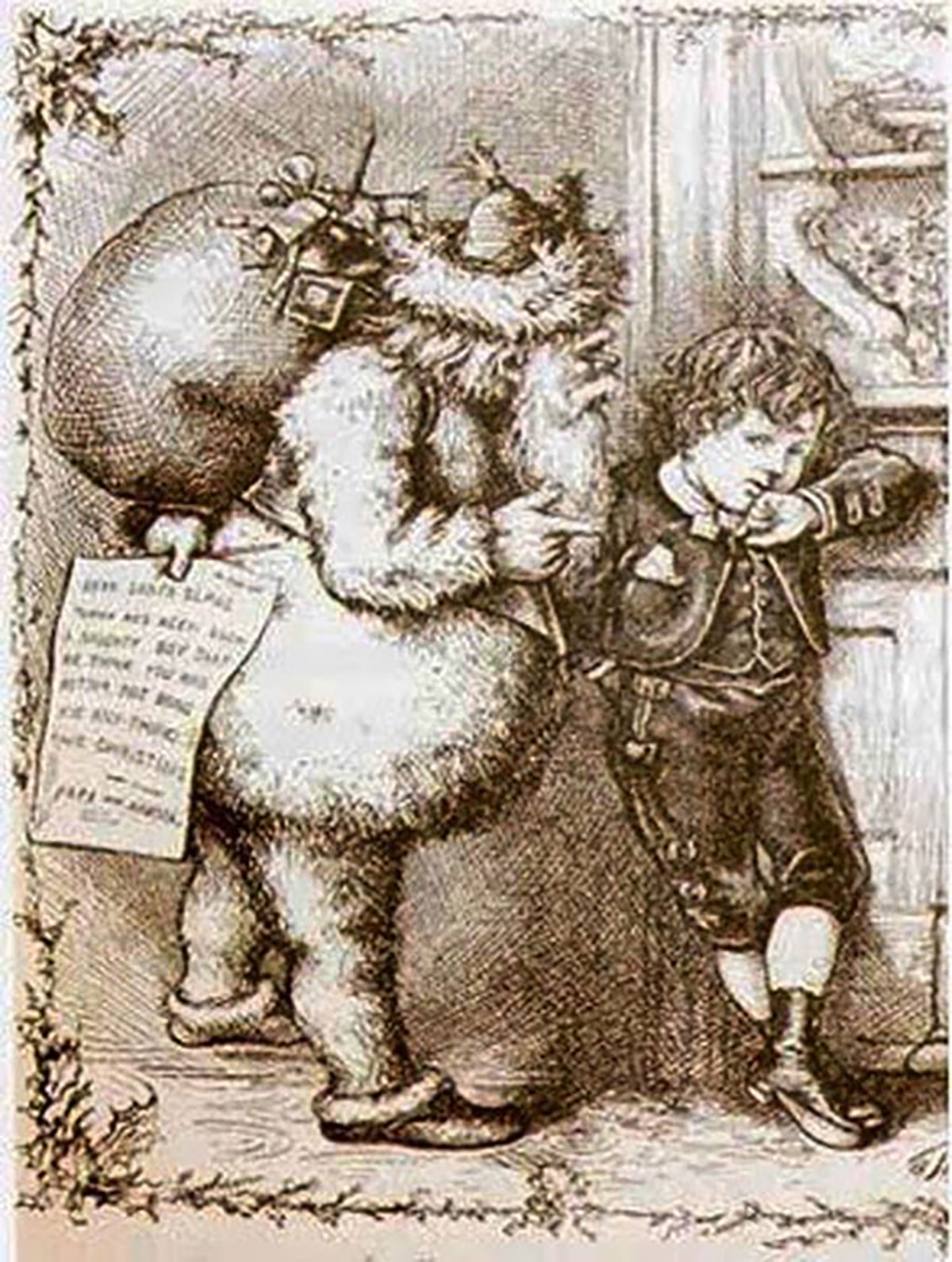 وفي ستينيات القرن التاسع عشر، لعب رسام الكاريكاتير الأمريكي توماس نَست دوراً كبيراً في تشكيل صورة بابا نويل الحديثة، عندما رسمه في مجلة هاربر الأسبوعية بلحية بيضاء، وبطن مستدير، وملابس حمراء. وكانت هذه الرسومات نقطة تحوّل أساسية في تكوين صورة بابا نويل المعاصرة، إذ قدّمته كشخصية تعيش في القطب وتُسعد الأطفال في ليلة عيد الميلاد.