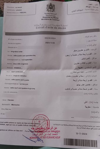 "أمي لا تعرف القراءة ولا الكتابة، ربة بيت، لا تتحدث حتى العربية (تقصد الدارجة المغربية)، لا تجيد سوى لغتها الأمازيغية البسيطة. لذا، أوكَلت زوج أختي ليتولّى الإجراءات الإدارية نيابةً عنها من أجل أن تتلقّى تعويضاً. لكنّ الطلب رُفض بشكل قاطع، ليُغلَق باب الأمل أمام امرأة عاشت حياتها في هذا الدوار"، تؤكد نديرة، مضيفةً "أنا مضطرة للبقاء مع أمي لأنها وحيدة وكبيرة في السن، وتخاف كثيراً"، ما يؤشّر إلى صعوبة سفرها لتقديم طلب جديد.