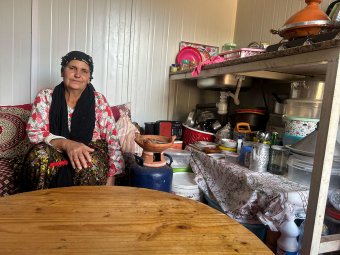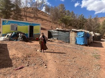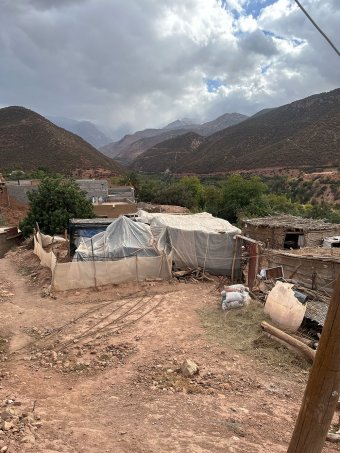 في القرى الأولى التي بلغناها، لم يكن الخطر محصوراً في الجبل ووعورة الطريق؛ وجوه عديدة بدت شاحبة، وملامح متشققة من البرد، لتكشف أن الحوز بعد أكثر من عامين على الزلزال يعيش واقعاً آخر، أكثر قسوة مما قد توحي به البيانات الرسمية عن أعداد المتضررين/ات وحجم الدمار. كالسيدة ذهبية التي انهار منزلها بالكامل وتعيش في مسكن بلاستيكي مؤقّت هي وزوجها الذي يعاني من إعاقة وأمها المسنّة.