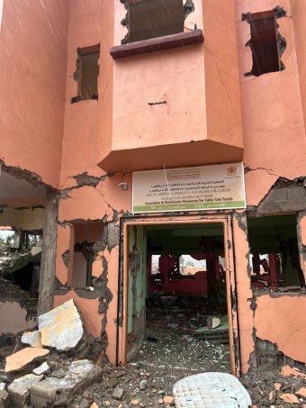 بعد مرور أكثر من عامين على زلزال الحوز، تُظهر الأرقام الرسمية أن وتيرة تأهيل البنية التحتية الأساسية في الإقليم لا تزال متفاوتة بين القطاعات. في منطقة "تلات نيعقوب" القريبة من مركز الزلزال، وثقنا انهياراً في دار الطالب ودار الطالبة المنجزة في إطار المبادرة الوطنية للتنمية البشرية، بقيتا على حالهما منذ 2023، بل أصبحتا مأوى للكلاب الضالة، بحسب مشاهداتنا.