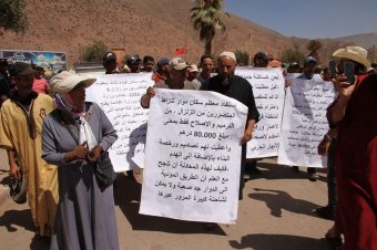 ورفع سكان الحوز خلال إحدى وقفاتهم الاحتجاجية، لافتةً دوّن عليها: "استفاد معظم سكان دوار تنزاظ المتضررين من الزلزال بالترميم والإصلاح فقط بمبلغ 80 ألف درهم (8,8 آلاف دولار) وأعطيت لهم تصاميم ورخصة البناء بالإضافة إلى الهدم. فكيف لهذه المعادلة أن تنجح مع العلم أن الطريق المؤدية إلى الدوار جد صعبة ولا يمكن لشاحنة كبيرة المرور عبرها".