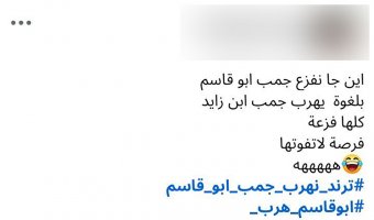 قال الشاعر: "وبنفزع جمب أبو قاسم رئيس مجلس البارود". وهي لغة رأى فيها اليمنيون الكثير من التعالي، قبل أن تحدث الانتكاسة، ليتحول اسم أبو قاسم، إلى مادة للنكتة عند البعض. والفزعة المشار إليها تعني المساندة والدعم، وقد أطلقها أحد شعراء عيدروس، عندما كانت قوات الانتقالي في عز قوتها وجبروتها، تركل كل من يعترض طريقها.