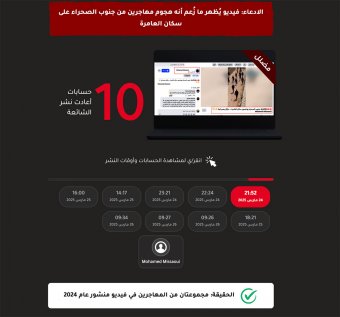 أما الفيديو الثاني الذي قام الحساب بترويجه، فقد نُشر يوم 7 نيسان/ أبريل 2025، بعنوان "جندوبة.. كذبة الترحيل.. الأمن يفرق الأفارقة من العامرة نحو المدن.. والأفارقة يعودون للعاصمة والمناطق الساحلية"، وتبين أن الفيديو خاطئ.