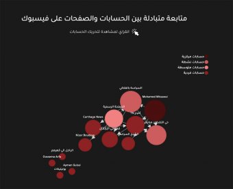 تربط عدد من الحسابات، موضع التحليل، علاقة متابعة متبادلة على منصة فيسبوك.