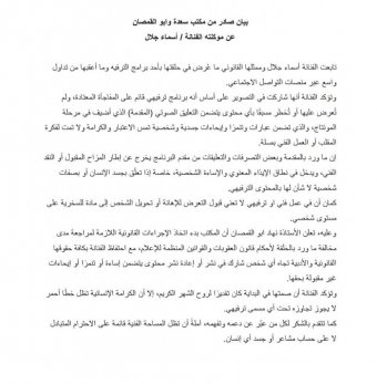 وليس رواد السوشال ميديا فحسب، بل ظهرت إحدى الفنانات، وهي راندا البحيري، لتبدي انزعاجها واندهاشها من موافقة أسماء جلال على أن يتم تقديمها خلال الحلقة بأنها مجرد جسد، والتسفيه منها كفنانة، وذلك من خلال منشور على الفيسبوك قامت راندا البحيري بنشره بمجرد عرض الحلقة.