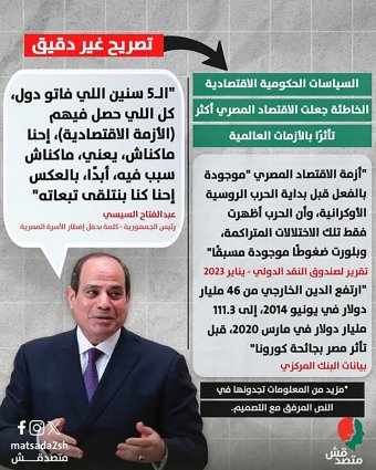 لكن منصة "متصدقش" المصرية تتبّعت التصريح، ووجدت أنه غير دقيق، وأنه على الرغم من تأثّر مصر بالأزمات المختلفة منذ جائحة كورونا عام 2020، فإن وجود سياسات اقتصادية خاطئة انتهجتها الحكومات المتعاقبة في السنوات الأخيرة، جعلت الاقتصاد المصري أكثر تأثراً بالأزمات الاقتصادية خلال السنوات الماضية، بما فيها الغزو الروسي لأوكرانيا في شباط/ فبراير 2022.