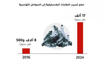 لم تعد الأرقام تحتمل التأويل؛ فعلى مدار ثلاثة أعوام ما بين 2021 و2024، تسلّل إلى البحر من الساحل التونسي نحو 17 ألف طن من نفايات البلاستيك، التي تشكل ما بين 54 و70% من إجمالي النفايات على الشواطئ التونسية، وفق دراسة صادرة عن "معهد البيئة المائية" بألمانيا عام 2024.