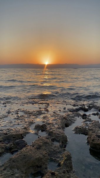 وأنا مثلهم افترش يومياً وسادة صغيرة على البحر أمام هذه اللحظة المقدسة، واتسائل كيف خُلق كل هذا الجمال البديع؛ كم مبهراً هذا الكون، حيث لا يمكن وصفه بالكلمات، وكأن عيني تكتشف الألوان لأول مرة؛ تدرجات برتقالية تذوب في حمرة خجولة، قبل أن يداعب وجهي شعاع ذهبي حانٍ، يتسلل إلى عيني بلطف، وكأنه يهمس لي: "أنت أيضاً تستطيعين الولادة من جديد كما أتجدد أنا يومياً".