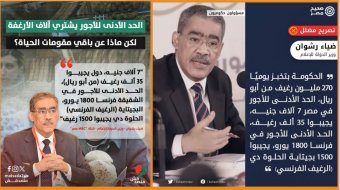 أثار تصريح وزير الدولة للإعلام، ضياء رشوان، حالة من الجدل في مصر، إذ قال إن "الحد الأدنى للأجور في مصر كام دلوقتي؟ 7 آلاف جنيه (نحو 128 دولاراً أمريكياً)، دول يجيبوا 35 ألف رغيف، الحد الأدنى للأجور في الشقيقة فرنسا 1800 يورو، البجيتاية (الرغيف الفرنسي) الحلوة دي يجيبوا 1500 رغيف، والرغيف ده قد ده 3 مرات في الوزن، ده 270 جراماً، وده 90 جراماً، يعني لو قولنا هو هو، يبقى الحد الأدنى للأجور في مصر يجيب 11 ألفاً و700 رغيف".