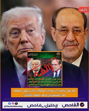 أما في العراق، فانتشر تصريح منسوب إلى الرئيس الأمريكي دونالد ترامب، وهو يقول: "نوري المالكي كان يعمل معنا ضد المسلحين قبل عشرين عاماً وساعدنا كثيراً في الفلوجة ولكن نحن الآن لا نريده فهو خائن وأنا لا أحب الخونة".