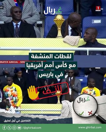 ختاماً في المغرب حيث تحقّقت منصة "غربال"، من صورة زعم ناشروها أنها توثّق وضع مسؤولي الاتحاد السنغالي "منشفة ميندي" بجوار كأس الأمم الإفريقية 2025 الذي حقّقته السنغال أخيراً وصدر قرار من الاتحاد الإفريقي لكرة القدم (كاف) بسحب اللقب ومنحه للمغرب، على المنصة في المقصورة الرئيسية للملعب قبل مباراة ودية في فرنسا.